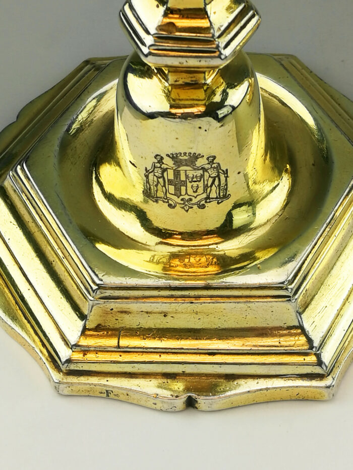 PAIR ANTIQUE 18th CENTURY FRENCH SILVER GILT CANDLESTICKS c. 1745