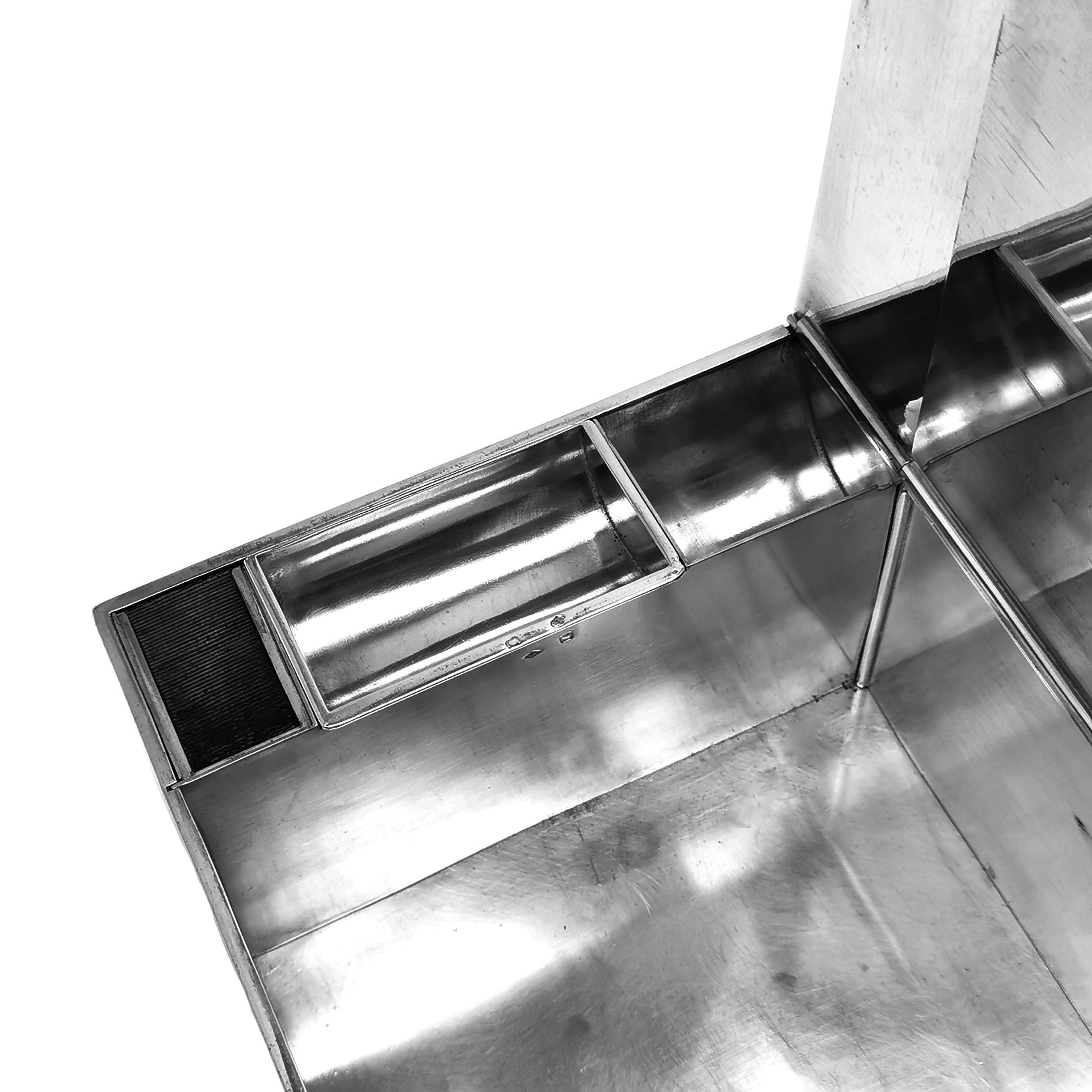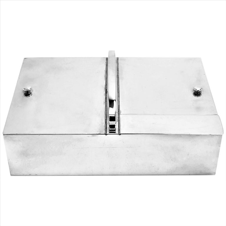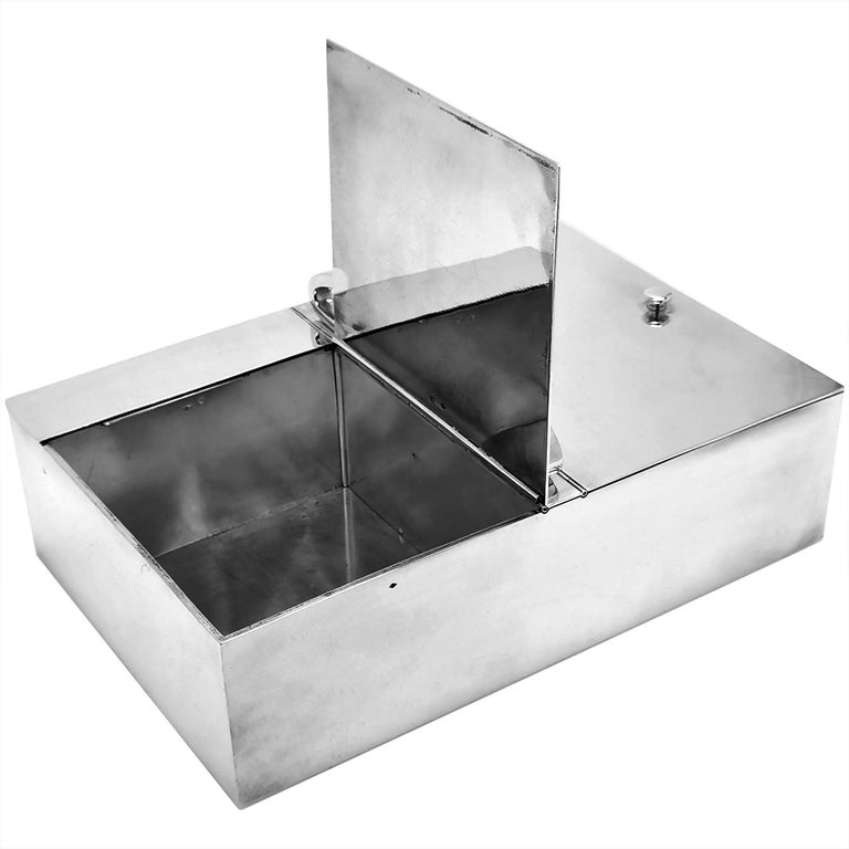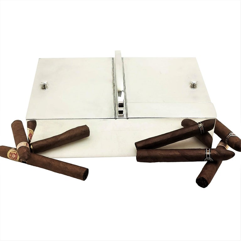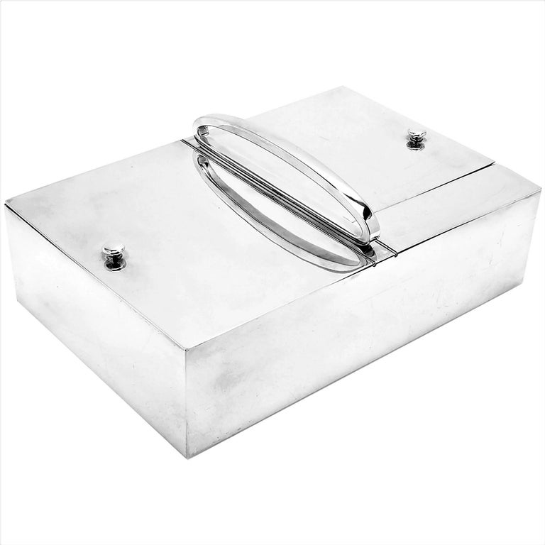 A magnificent French Antique silver Smokers Companion with two large compartments for cigars / cigarettes and one smaller compartment for matches and a match striker. The Smoking Box is of substantial size and weight and has a handle on the top for ease of carrying.