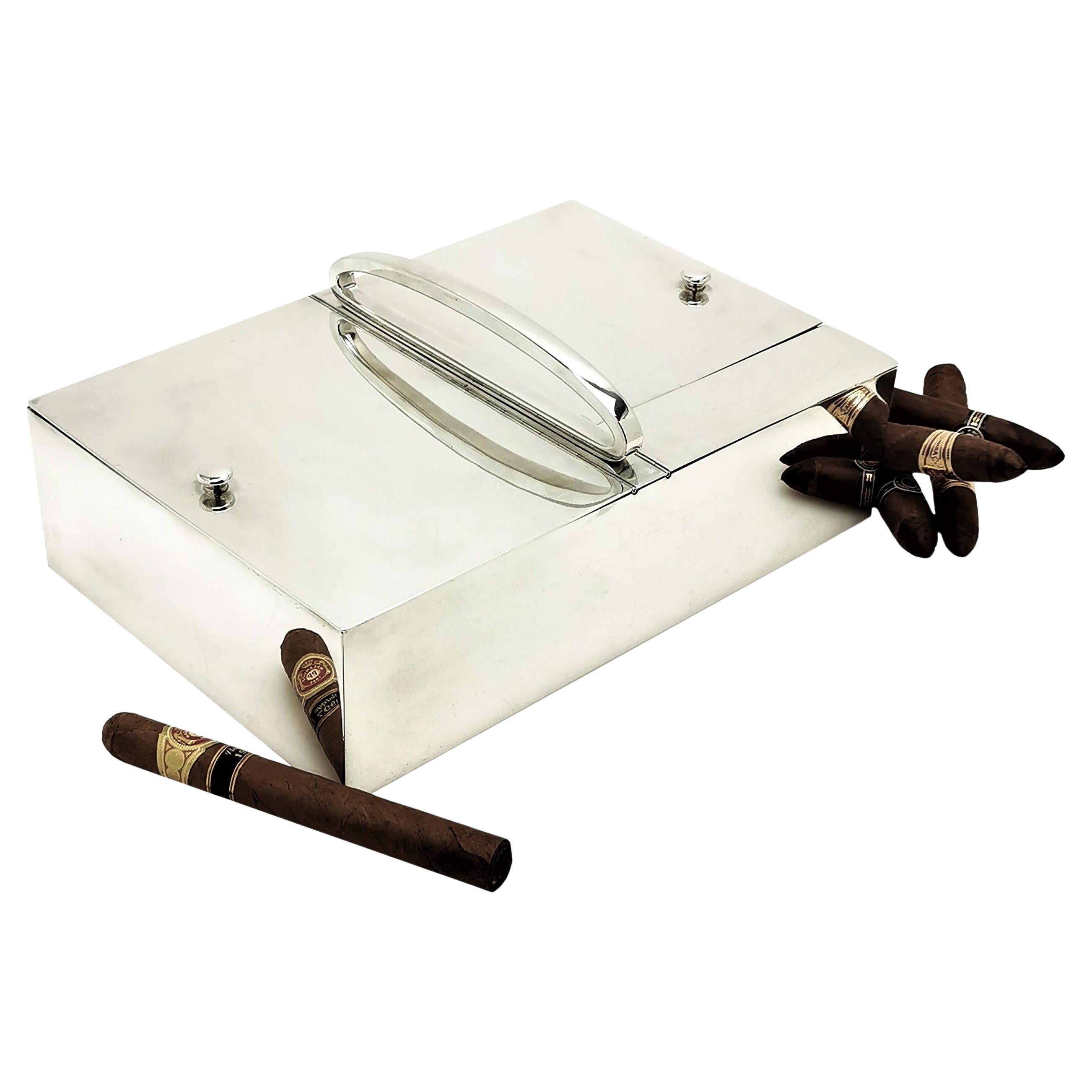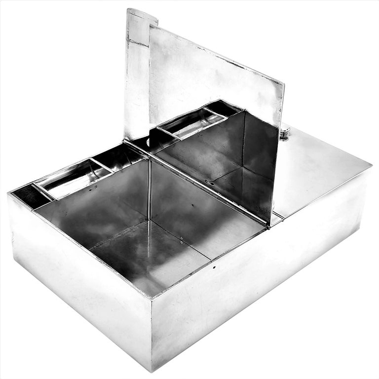 Large Antique French Solid Silver Cigar Box Cigarette Smokers Companion c. 1910