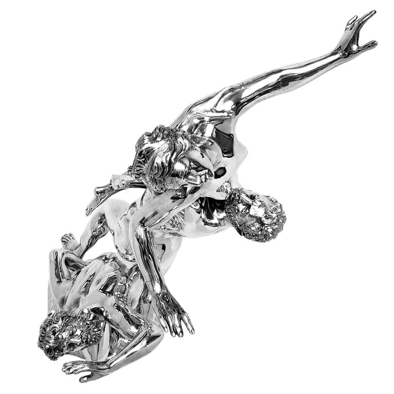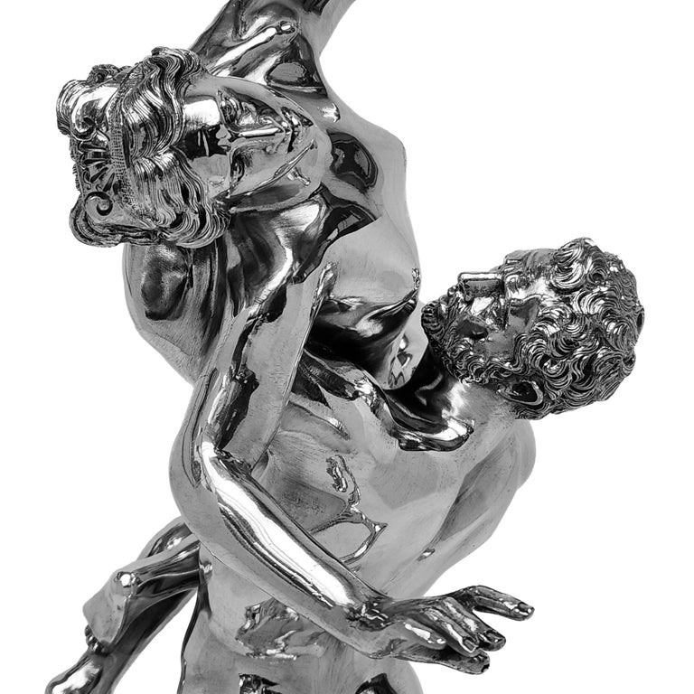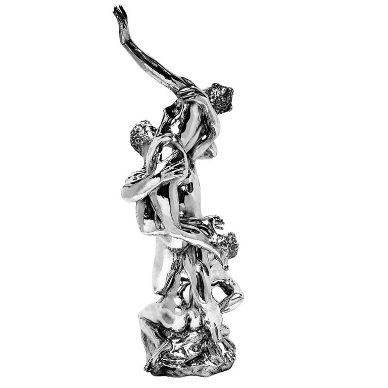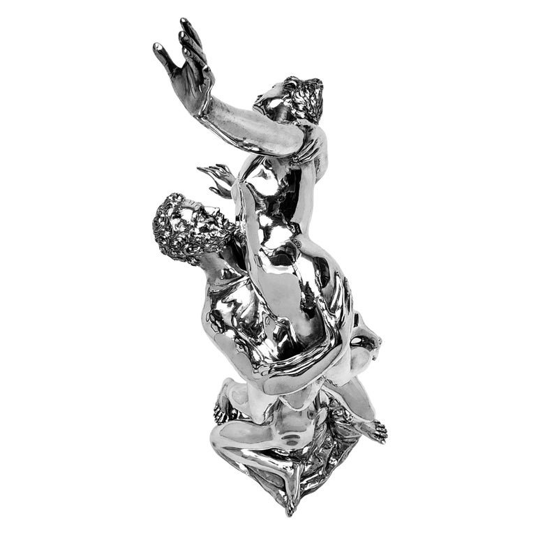 An impressive Solid Silver Sculpture showing The Abduction of a Sabine Woman created by Giambologna in c. 1579. This 20thc Italian Silver version of the remarkable original Renaissance Sculpture is created with a keen and sensitive attention to detail and paying homage to the original in all aspects. This Silver Sculpture is of notably heavy weight and excellent quality.