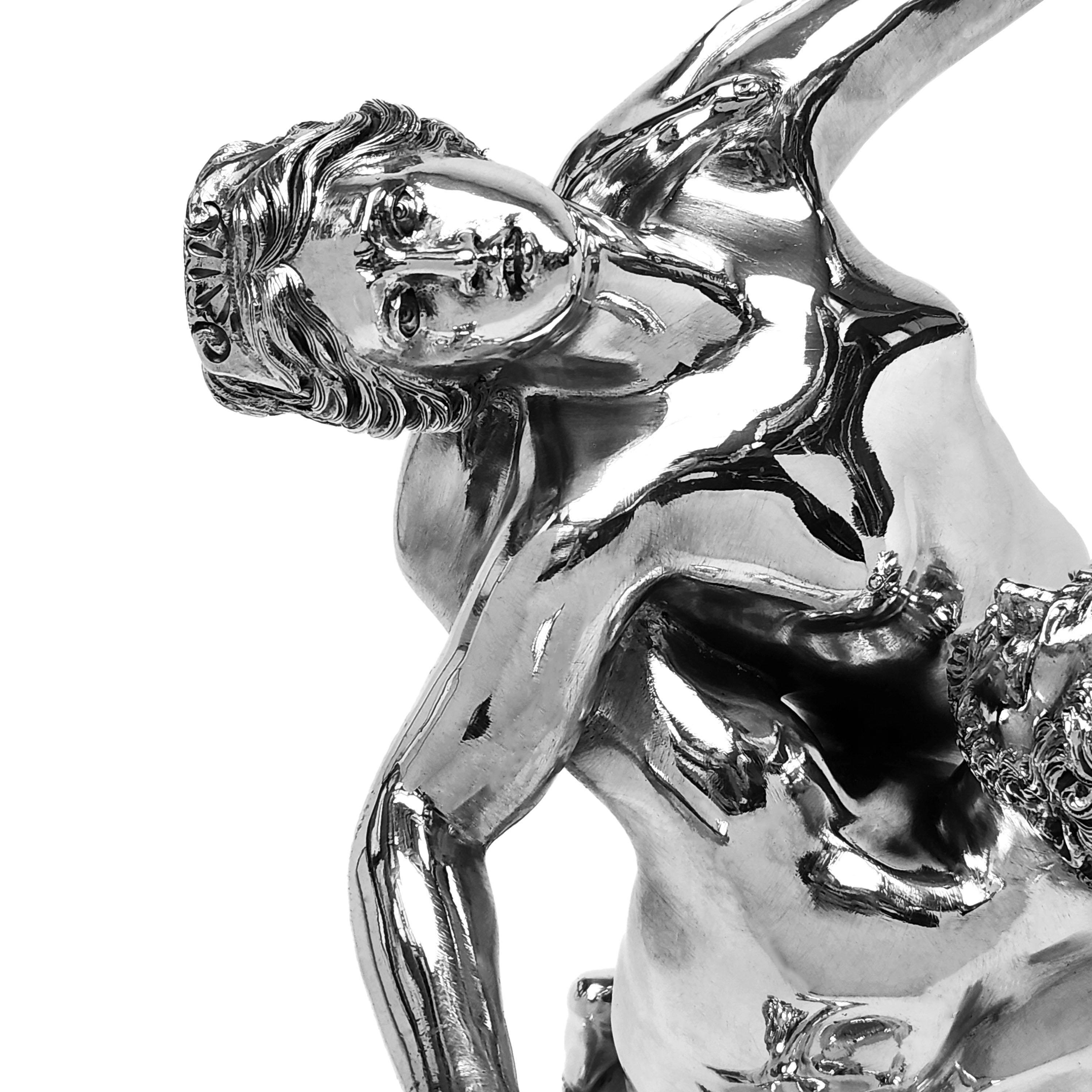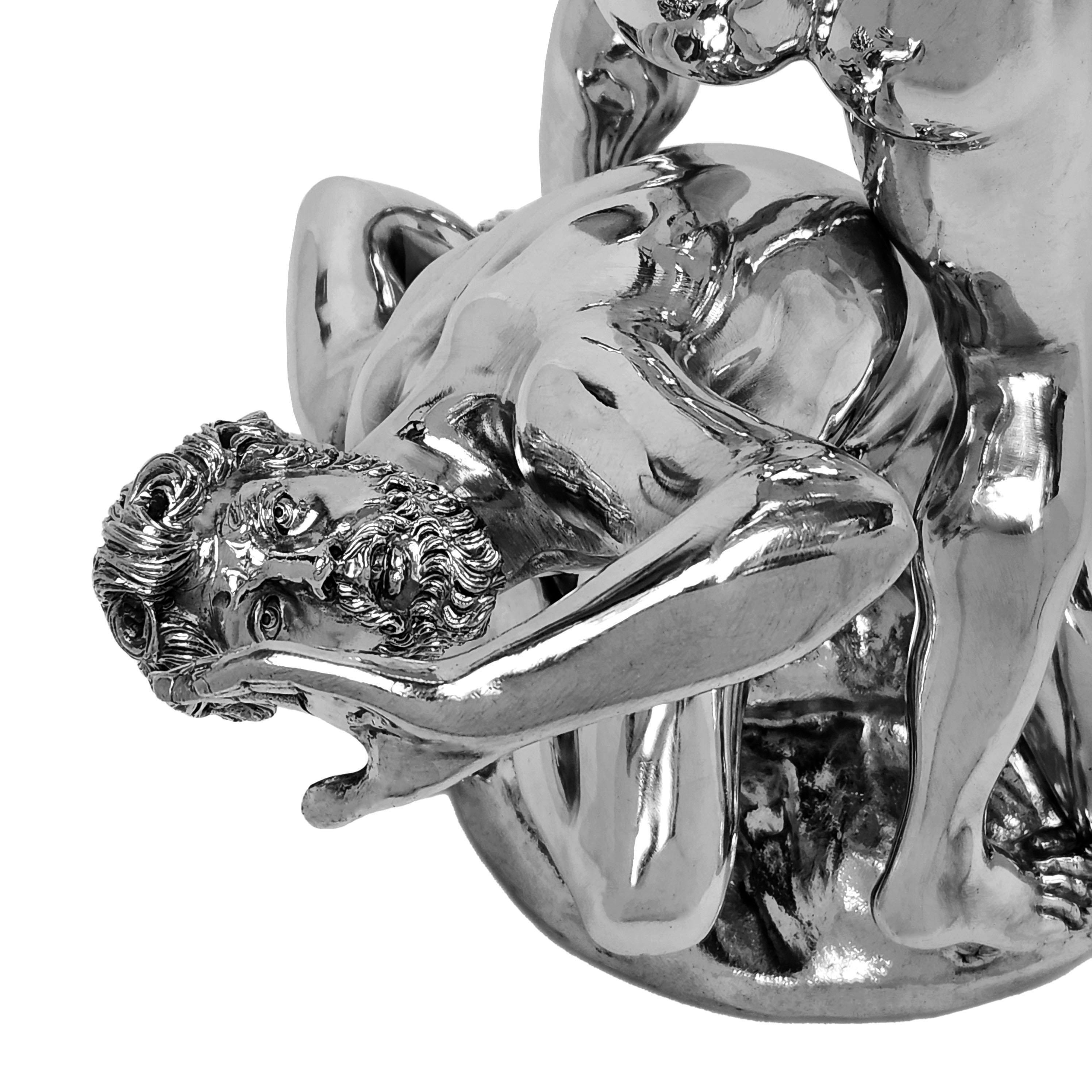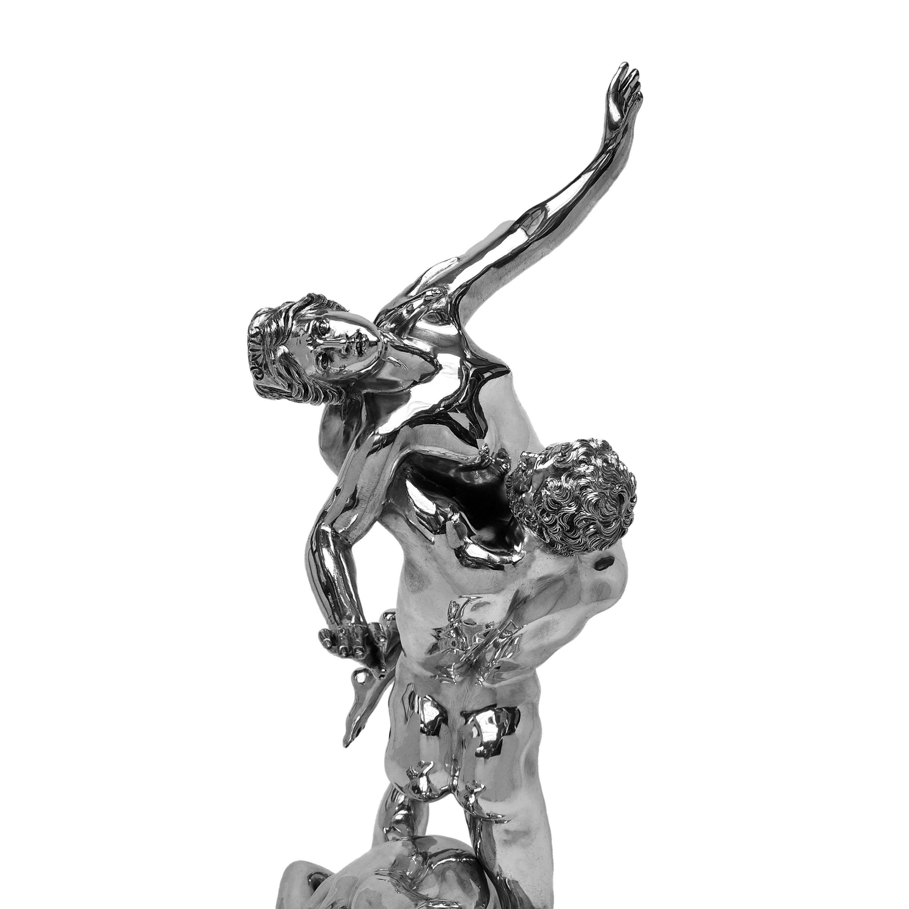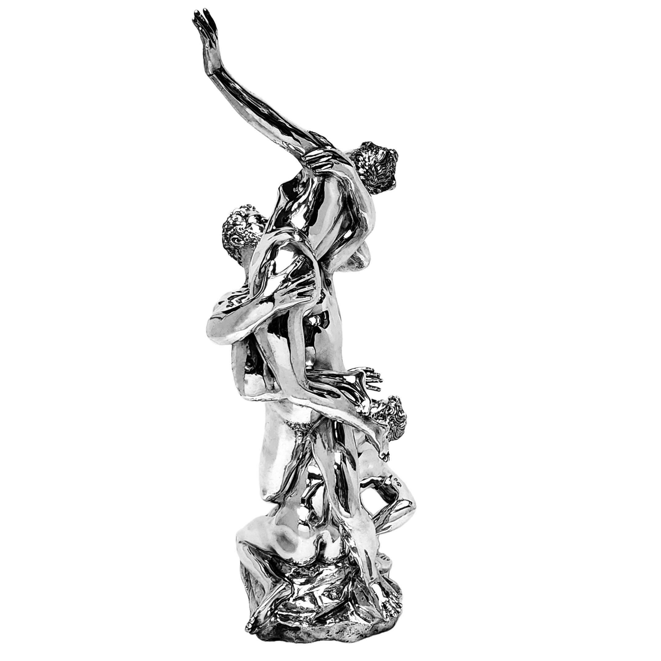 An impressive Solid Silver Sculpture showing The Abduction of a Sabine Woman created by Giambologna in c. 1579. This 20thc Italian Silver version of the remarkable original Renaissance Sculpture is created with a keen and sensitive attention to detail and paying homage to the original in all aspects. This Silver Sculpture is of notably heavy weight and excellent quality.