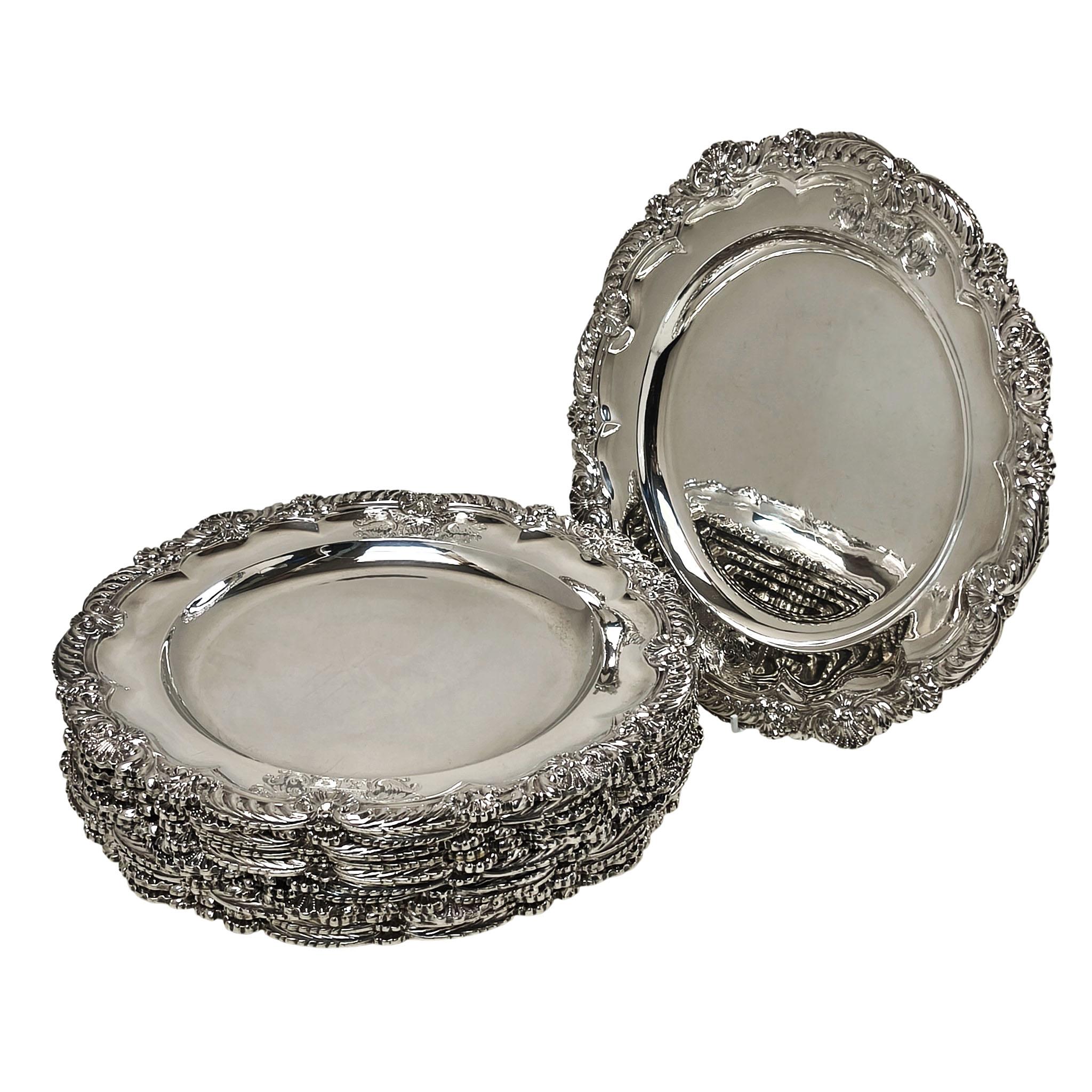 Antique Georgian Regency Set of 12 Silver Dinner Plates 1820