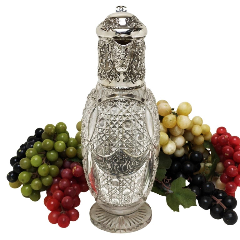 Antique Edwardian Silver & Cut Glass Claret Jug / Wine Decanter 1904