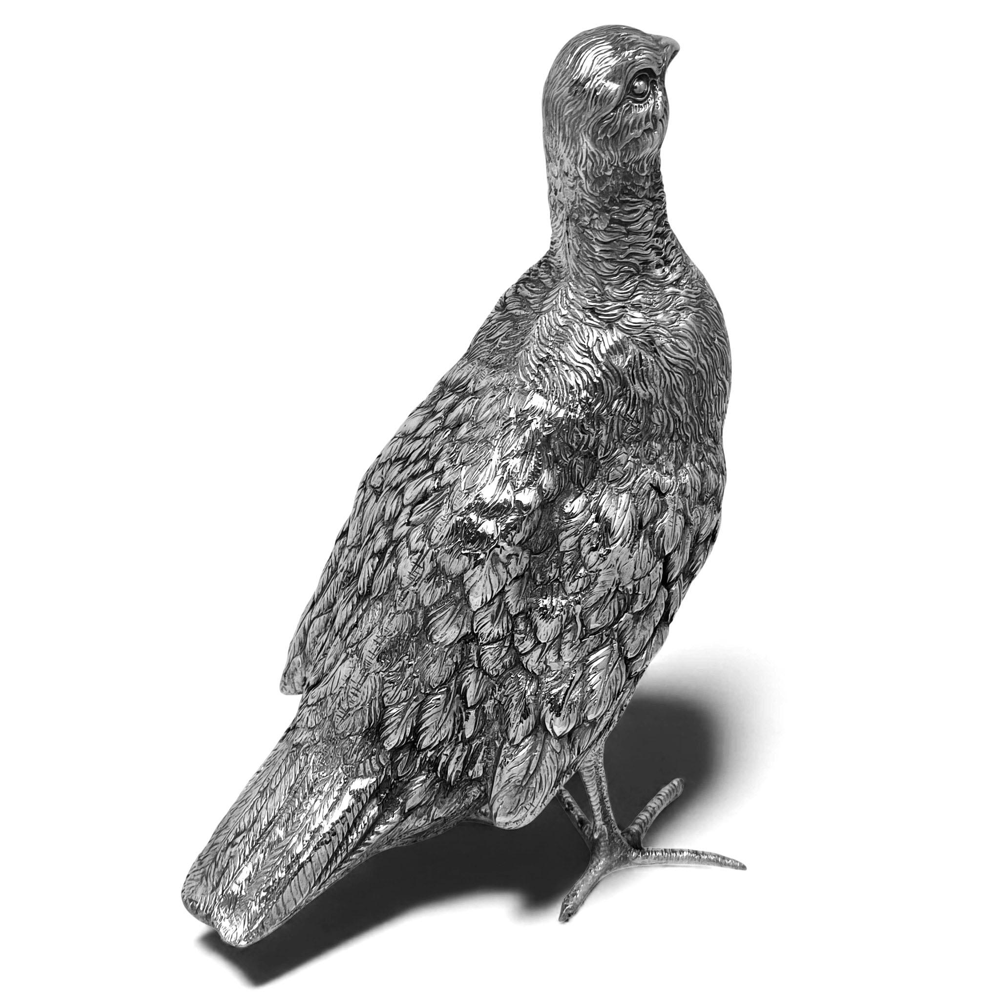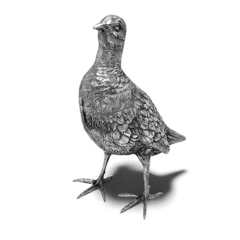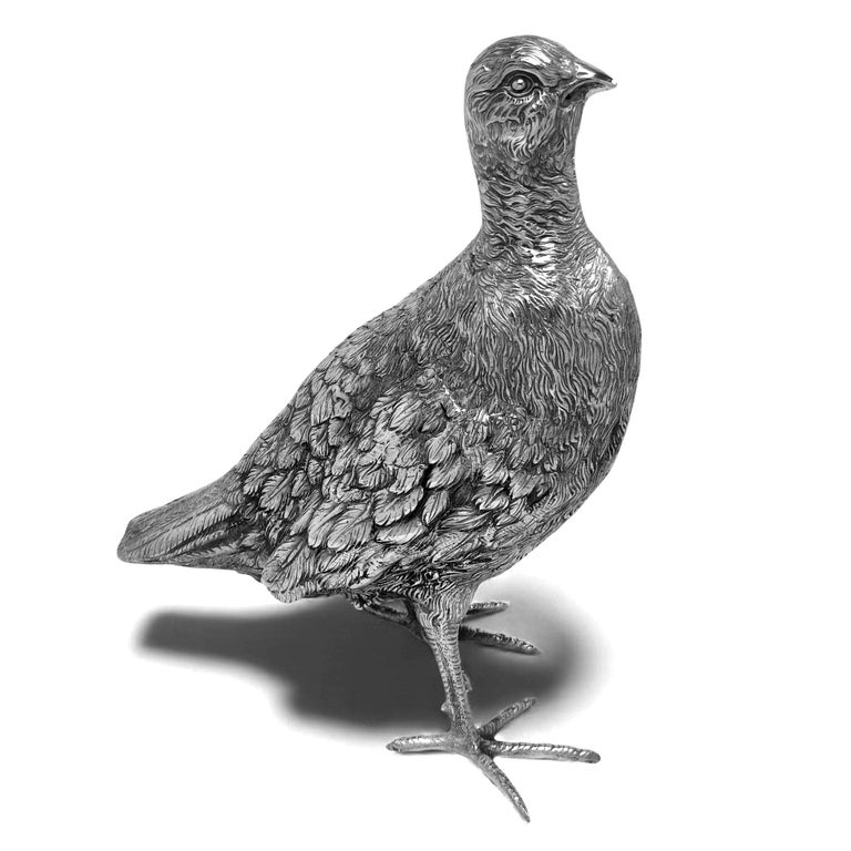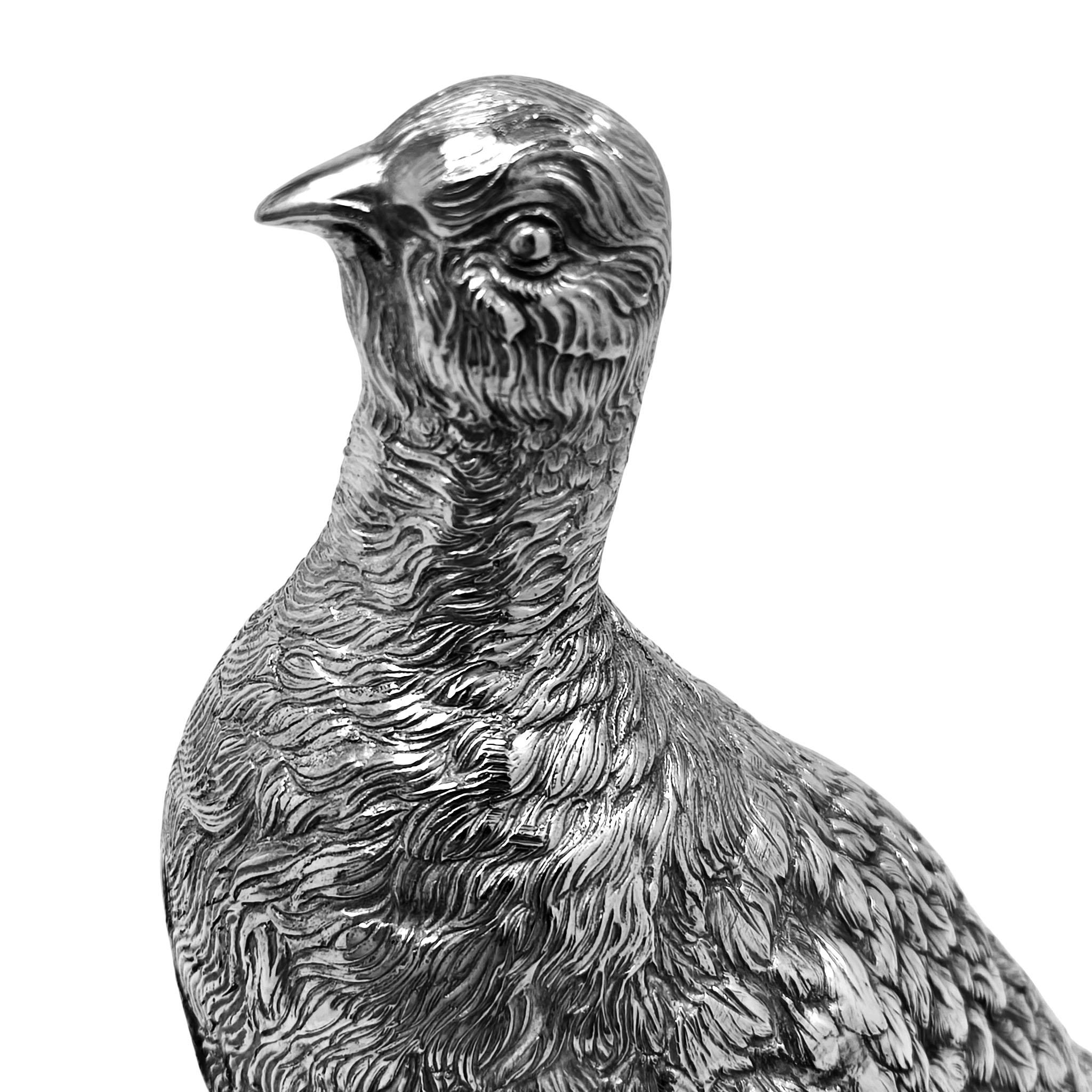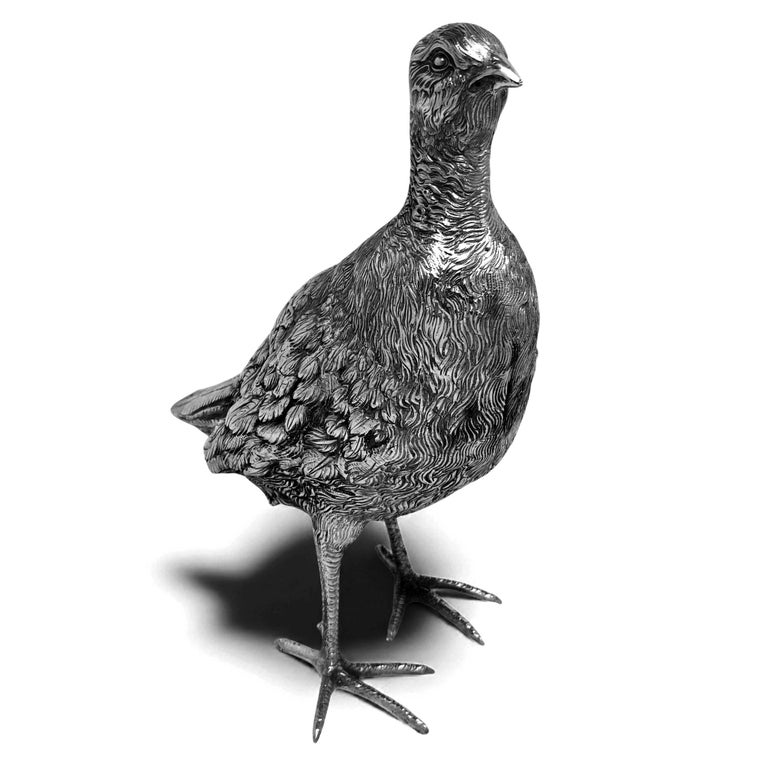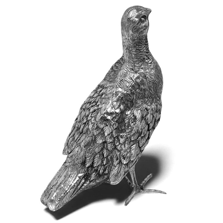 A lovely and substantial Antique Solid Silver Model of a Grouse. This Bird Figurine is modelled with a nice attention to detail and is of generous size.