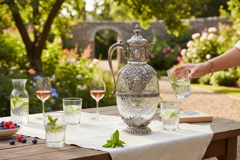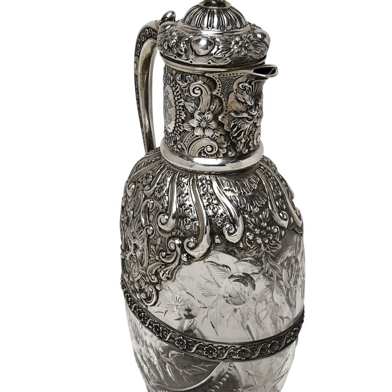 Antique Victorian Silver Claret Jug Wine Decanter London, England 1889