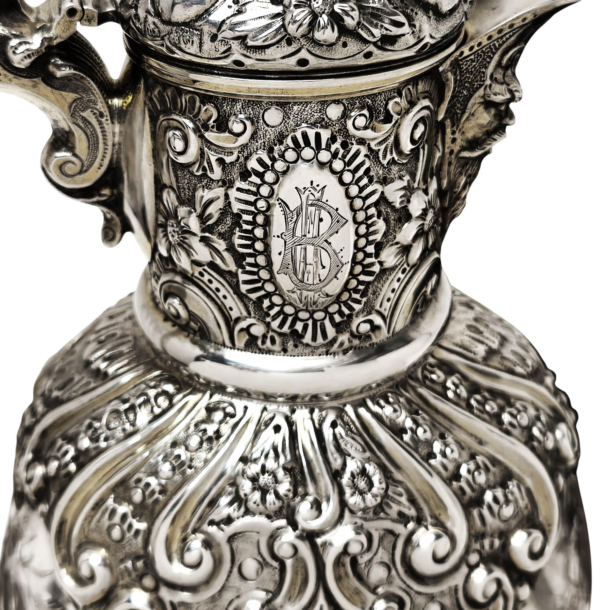 Antique Victorian Silver Claret Jug Wine Decanter London, England 1889