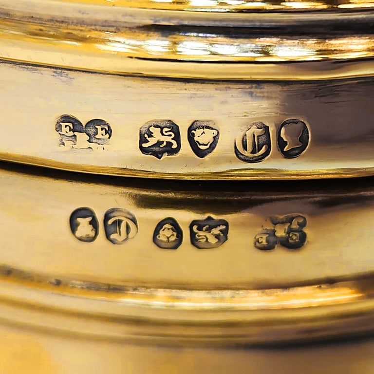 Pair Antique Victorian Sterling Silver Gilt Wine Bottle Coasters 1838