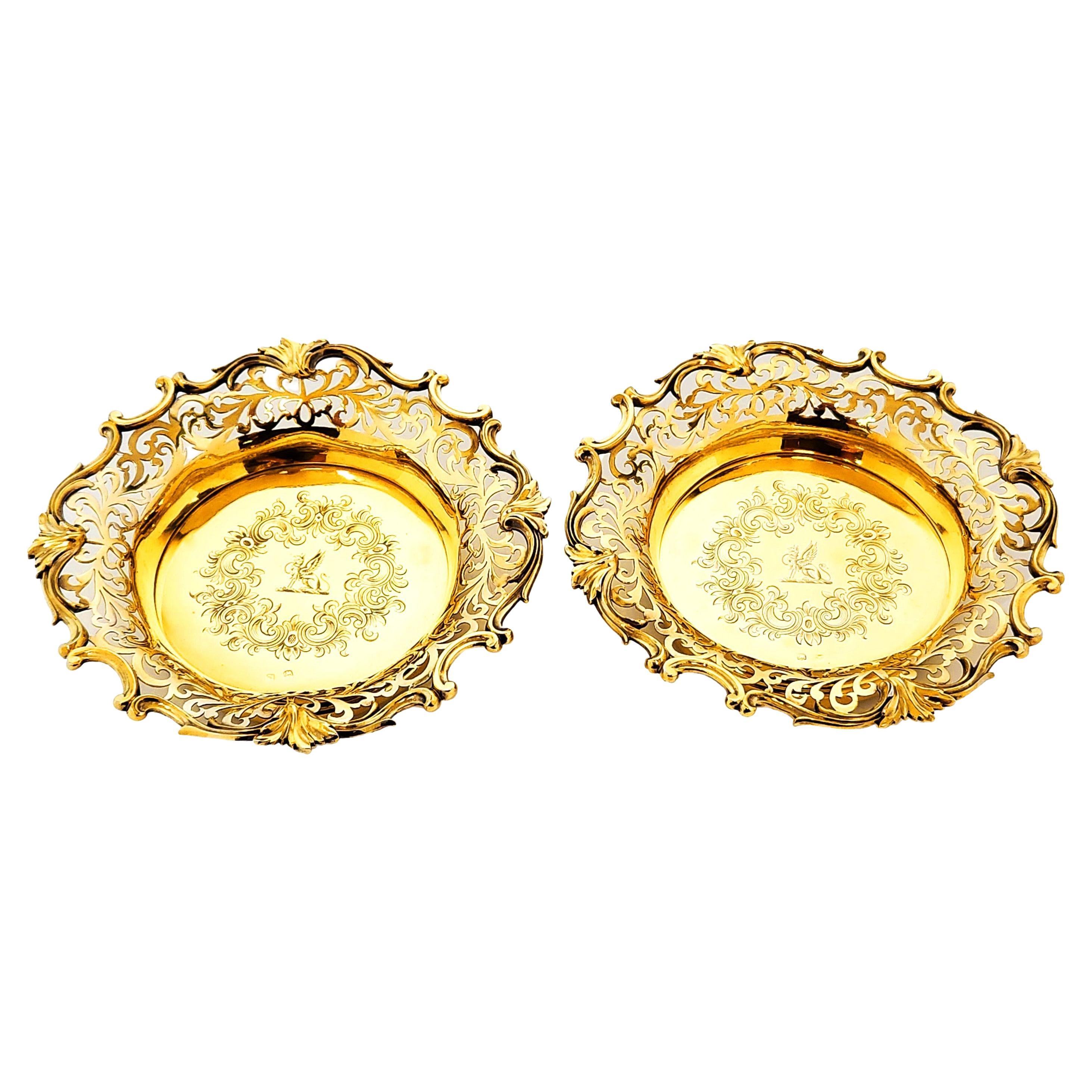 Pair Antique Victorian Sterling Silver Gilt Wine Bottle Coasters 1838