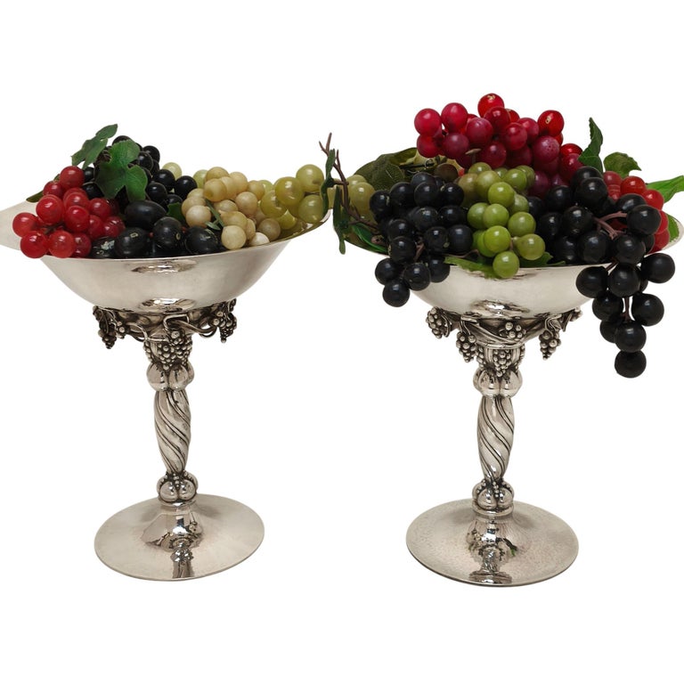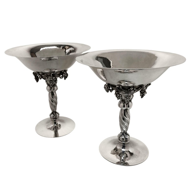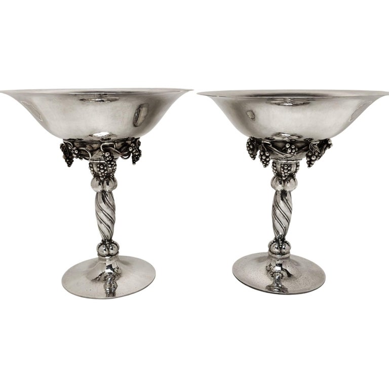 Timeless and versatile, these compotes are equally suited to a formal dining table, a sideboard display, or as statement pieces within a curated silver collection. Exemplifying Georg Jensen’s mastery of form and craftsmanship, this exceptional pair would make a striking addition to any collection of fine Scandinavian silver