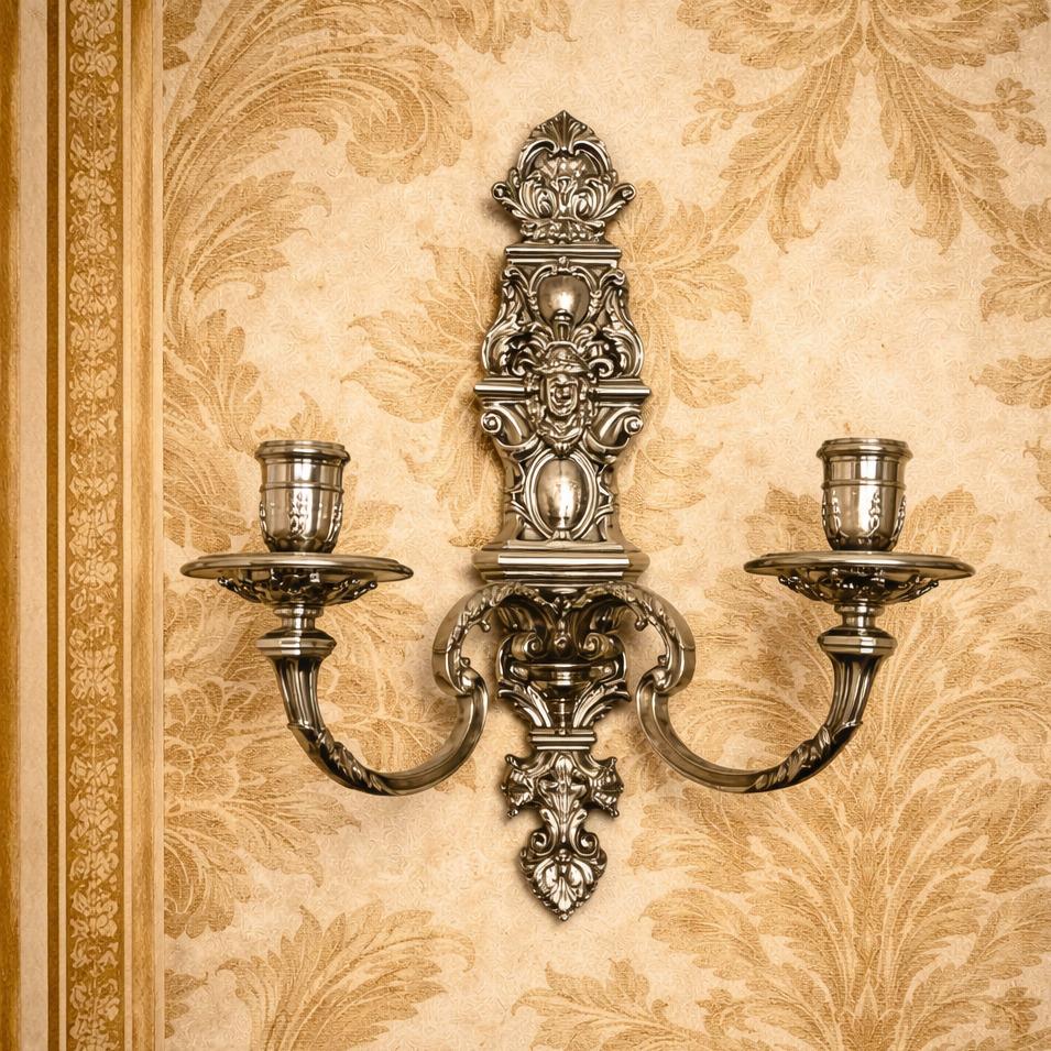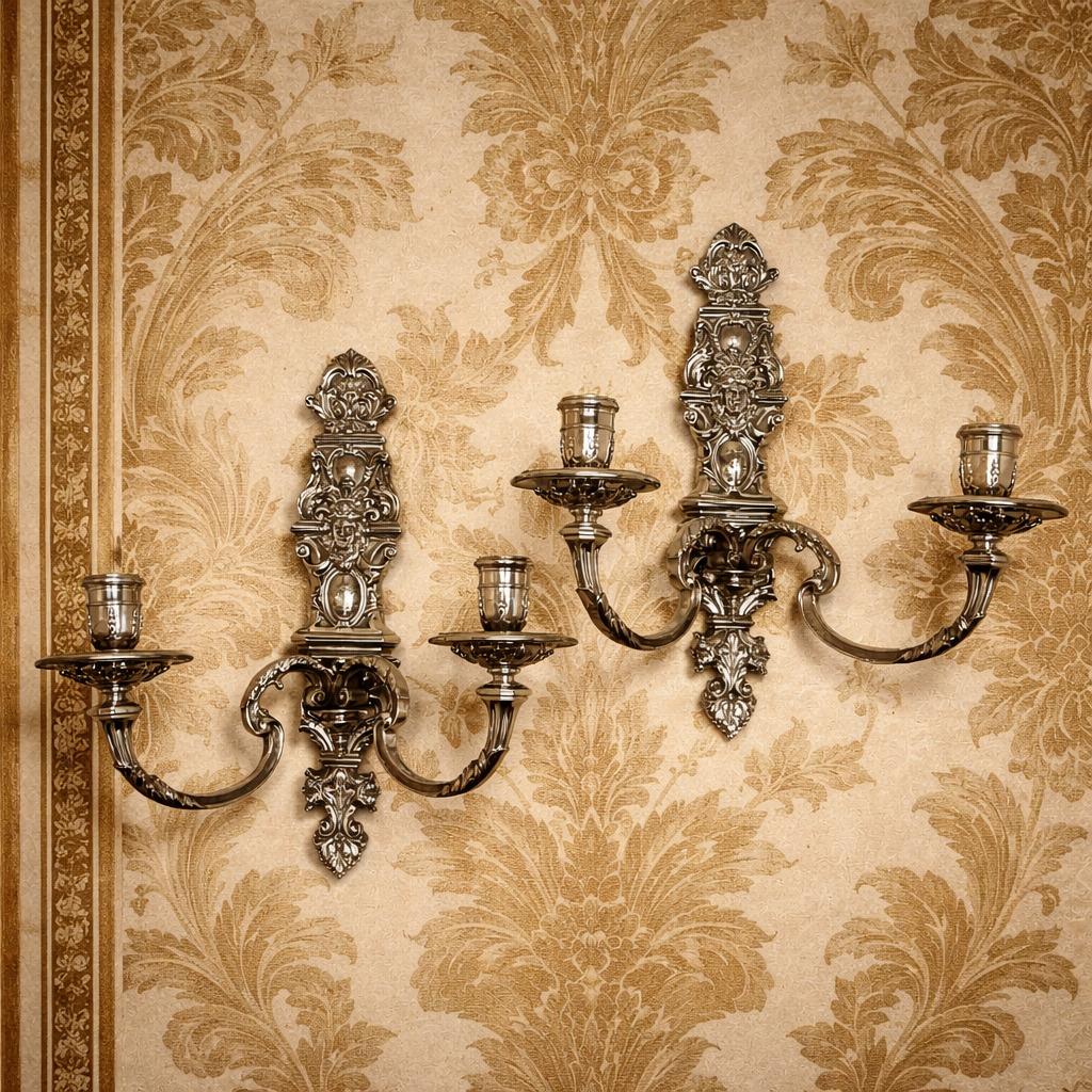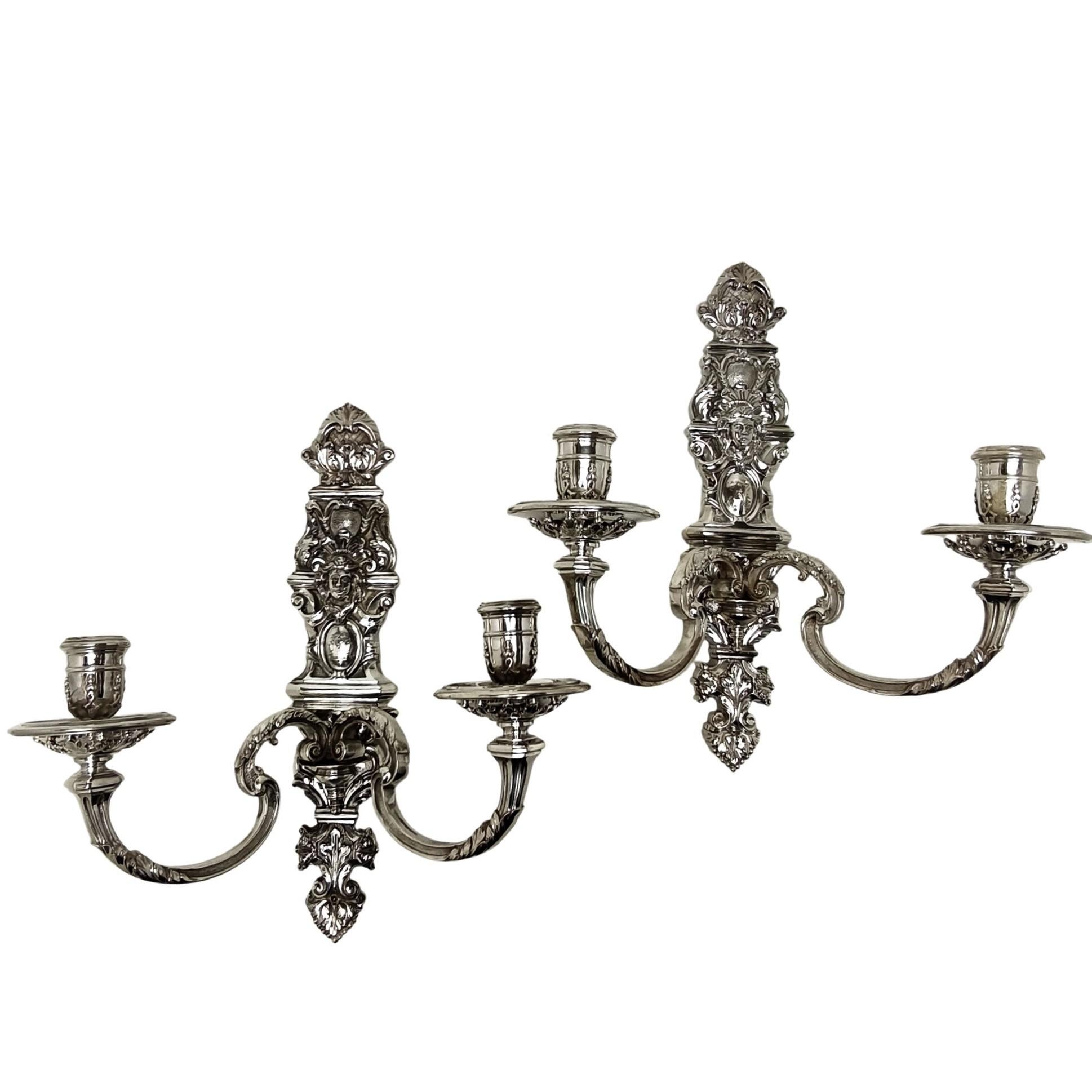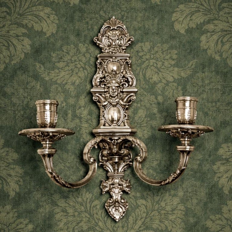 This Set of Cast Silver Wall Sconces is in exceptional condition with no damage.